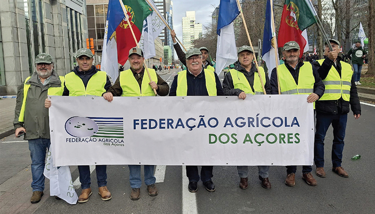 Jorge Rita, presidente da Federação Agrícola dos Açores (FAA), acompanhado pela sua direção, em conjunto com a Confederação de Agricultores de Portugal (CAP), participou na manifestação de agricultores em Bruxelas